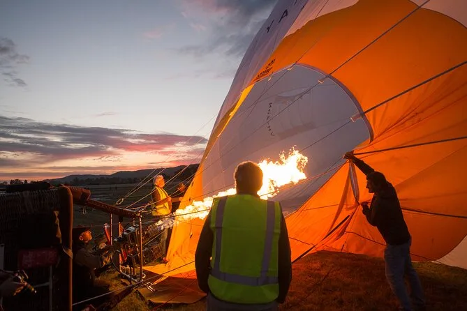 Der Morgen begann nicht ganz reibungslos – ich hab meinen Wecker verpennt und hätte fast den Abholtermin verpasst. Mein Partner stand schon draußen in der kühlen Dunkelheit und lachte, während ich versuchte, mit einer Hand die Jacke zuzumachen und in der anderen den Kaffee zu halten. Als wir im Avon Valley ankamen, war der Himmel dieses tiefe Blau kurz vor Sonnenaufgang, und unser Guide (Dave? Oder war’s Dan? – ich war noch halb wach) reichte uns dicke Handschuhe, falls wir beim Aufbau des Ballons helfen wollten. Die Brenner zischten so laut, dass ich erschrak, aber ehrlich gesagt machte das alles viel realer. Das Gras war noch feucht und irgendwo wehte der leichte Duft von Eukalyptus herüber.