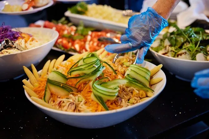 Du gleitest unter der Sydney Harbour Bridge hindurch, fährst direkt am Opera House vorbei und genießt ein Buffet mit vielen Optionen (auch vegan). Mit Live-Kommentar und echten Locals an Bord bekommst du Geschichten, die du in keinem Reiseführer findest – plus diese kleinen Momente, die dir lange im Gedächtnis bleiben.