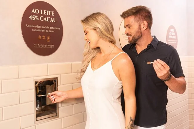 Dein Besuch umfasst den kompletten Einblick in Nugalis echte Schokoladenproduktion in Blumenau – vom Spaziergang durch das einzigartige Kakaound Vanillegwächshaus bis zum Rösten und Formen der Schokolade – inklusive unbegrenzter Verkostung ihrer preisgekrönten Sorten.