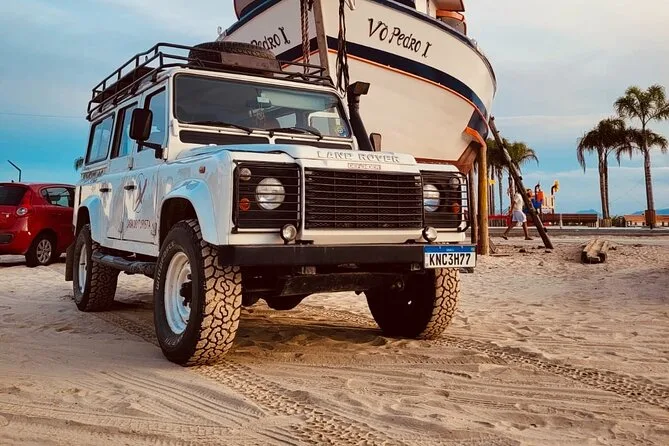Mit einem Land Rover 4x4 geht es über unbefestigte, holprige Wege zum Tainha Strand.