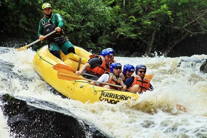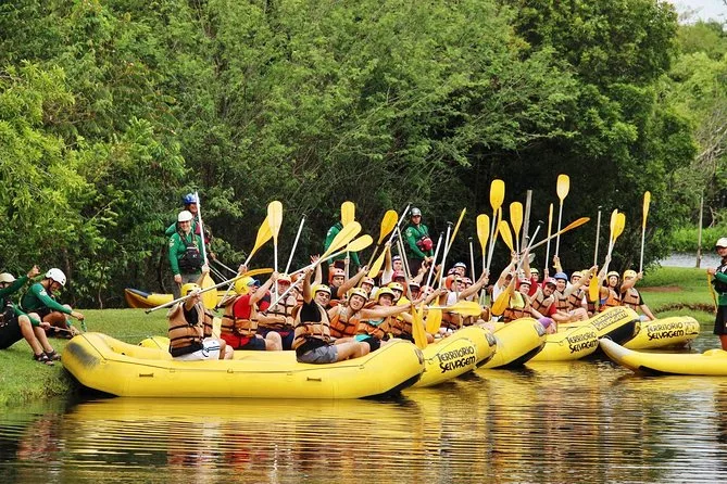 Dein Tag beinhaltet privaten Transport zum und vom Jacaré Pepira in Brotas, alle persönliche Sicherheitsausrüstung wie Helme und Windjacken, Eintritt zum Fluss, sowie Saft oder heiße Schokolade mit Honig nach dem Paddeln – alles begleitet von erfahrenen lokalen Guides, die jeden Flussabschnitt kennen.
