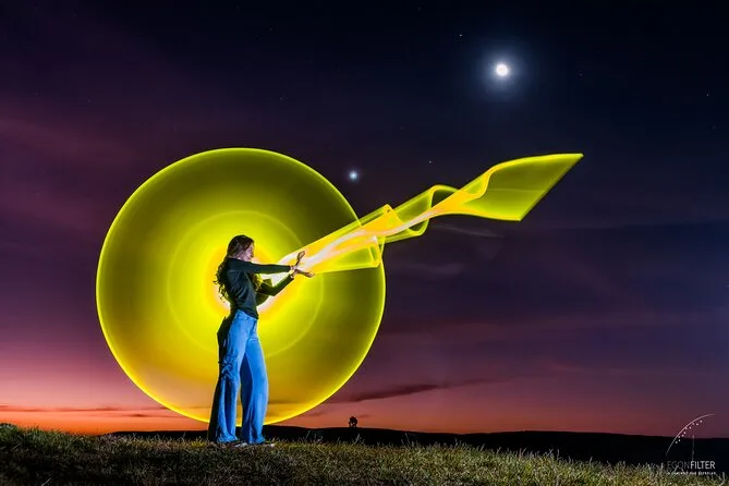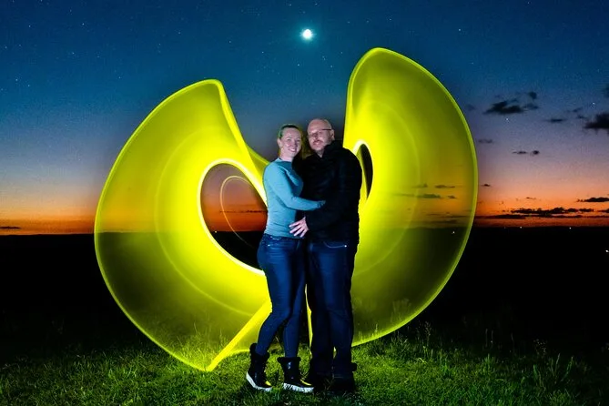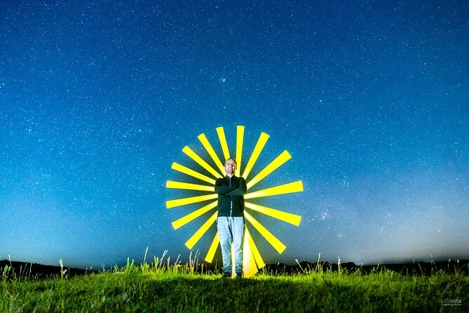 Ein erfahrener Guide mit Astronomie-Know-how und ein digitales Gruppenfoto unter dem Sternenhimmel.