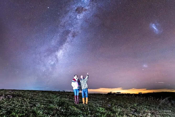 Unter dem tiefschwarzen Himmel von Cambara do Sul stehst du mit einem lokalen Guide, der dir hilft, Sternbilder, Planeten und vielleicht sogar Satelliten mit bloßem Auge zu entdecken. Freu dich auf stille Momente, unterbrochen von Lachen, Geschichten über außerirdisches Leben und ein gemeinsames „Sternen-Selfie“ als Erinnerung.