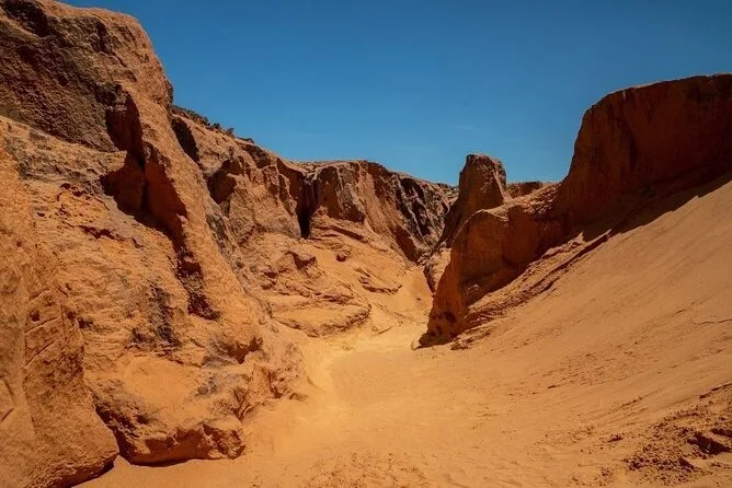 Du reist von Fortaleza zu drei der bekanntesten Strände in Ceará: Erkunde die bunten Klippen von Morro Branco, erfrische dich an den Süßwasserquellen und Höhlen der Praia das Fontes und genieße die entspannte Atmosphäre von Canoa Quebrada. Freu dich auf lokale Geschichten, echtes Essen und viel Zeit, die Atlantikluft tief einzuatmen – die bleibt lange nach der Rückkehr im Herzen.