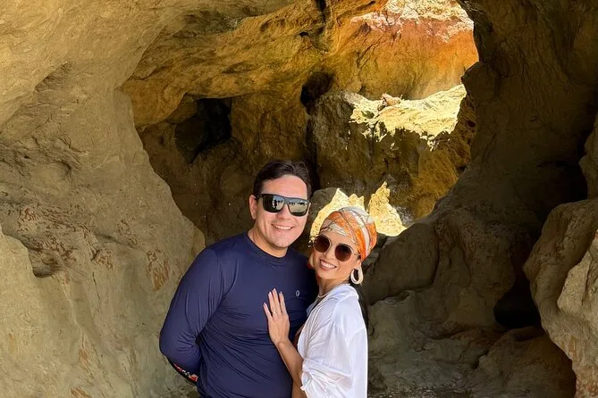 Als nächstes ging es zur Praia das Fontes. Der Name passte sofort, als ich sah, wie Wasser direkt aus den Klippen floss – kleine Bäche, die im Sonnenlicht funkelten, fast zu hell, um hinzuschauen. Dort gibt es die Höhle Gruta da Mãe D’Água, die sich kühler anfühlte als draußen, fast feucht auf der Haut. Einige entschieden sich für eine Buggy-Tour (Paulo meinte, die lohnt sich, wenn man mehr sehen will), ich blieb lieber stehen und schaute den Kindern zu, wie sie unter der sogenannten Quelle der Jugend planschten. Jemand scherzte, wir kämen alle zehn Jahre jünger zurück. Vielleicht nicht ich – aber irgendwie fühlte ich mich leichter.