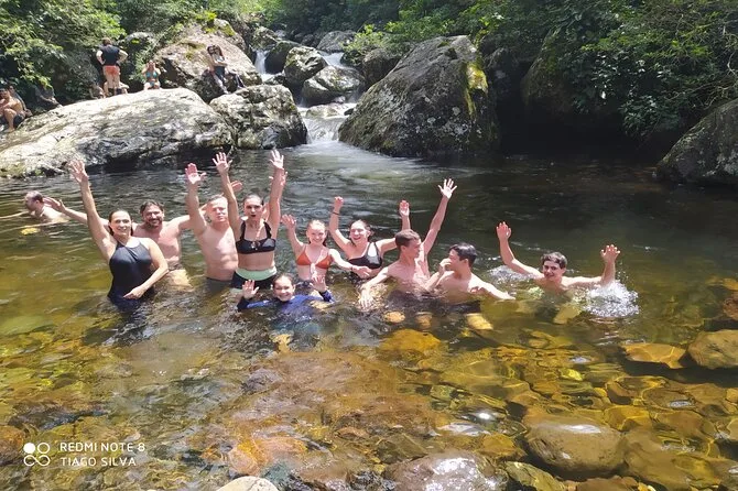 Wir folgten dem Pfad am Malacara-Fluss entlang, während unsere Schuhe über Kiesel knirschten. Der Wald roch herrlich frisch – wie nasses Laub nach einem Regenschauer. Rafael zeigte auf einen leuchtend blauen Schmetterling („borboleta azul“), der neben wildem Ingwer umherflatterte. Nach der ersten Flussquerung – das Wasser war zwar kühl, aber gut machbar – legten wir eine Pause ein. Rafael hob einen glatten Stein auf und erzählte, wie diese Canyons über Jahrtausende entstanden sind. Über uns zwitscherten Vögel, und ab und zu ließ eine Brise Wassertropfen von den Blättern fallen.