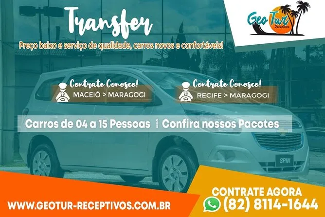 Reisen Sie bequem von Maragogi nach Recife mit einem privaten Transfer für Ihre Gruppe und einem ortskundigen Fahrer, der jede Kurve kennt. Freuen Sie sich auf eine reibungslose Abholung, genug Platz für Ihr Gepäck und die Möglichkeit, unterwegs für Kaffee oder einen kleinen Plausch anzuhalten – Momente, die diese Fahrt persönlich und besonders machen.