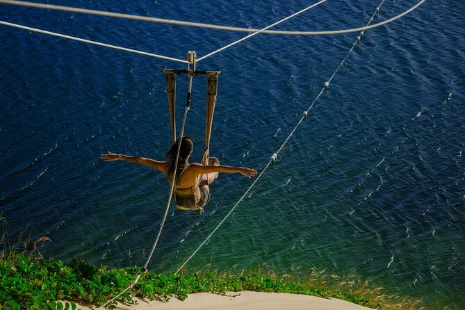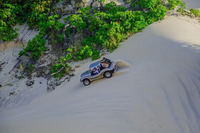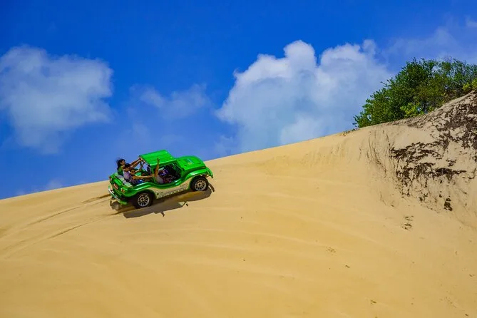 Rase mit einem erfahrenen Buggyfahrer über Natais Dünen, halte an für frische Ginga com Tapioca am Redinha-Strand und erfrische dich in der Lagoa de Pitangui. Überquere Flüsse mit der Fähre, beobachte Mutige an der Lagoa de Jacumã und genieße ein Mittagessen direkt am Porto Mirim Strand – mit Sonne im Haar und Sand zwischen den Zehen.