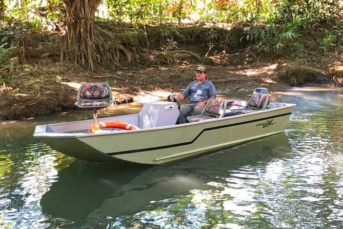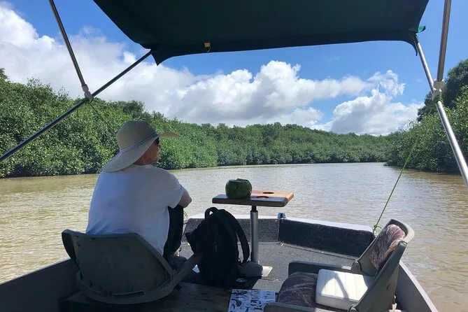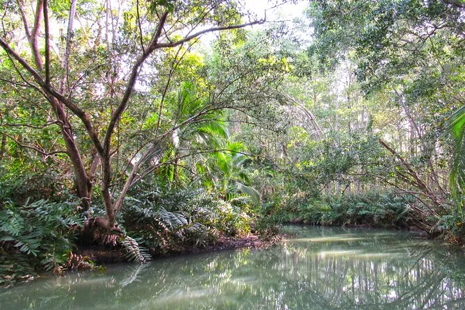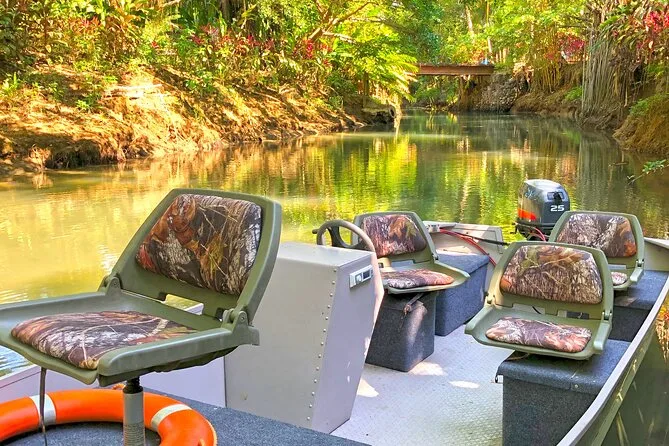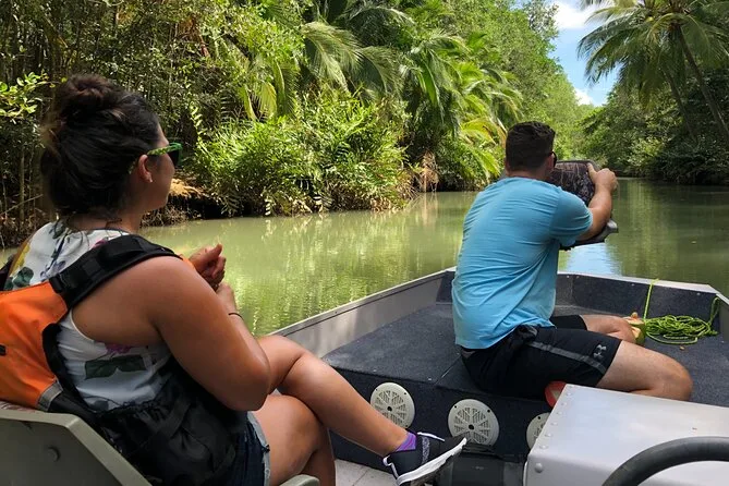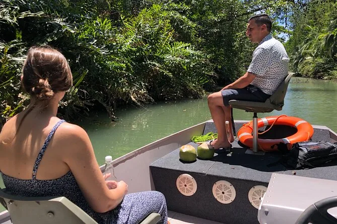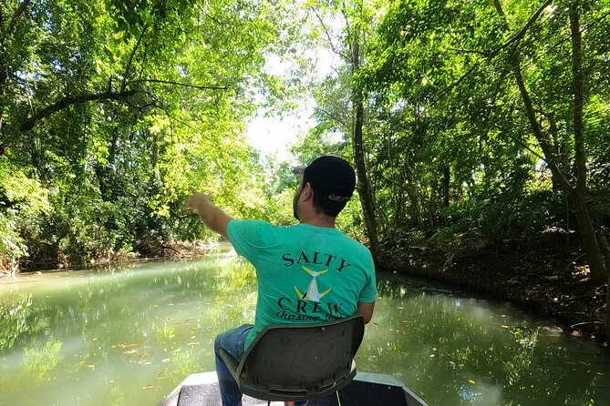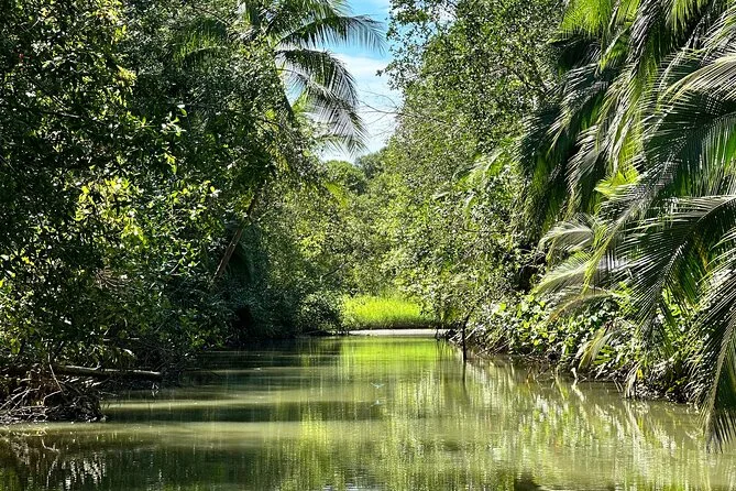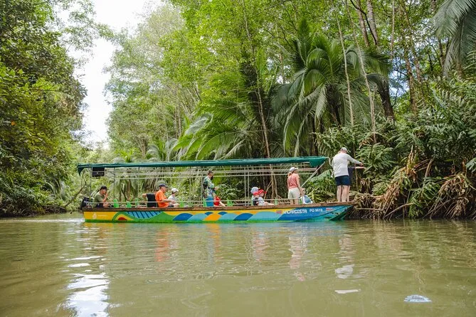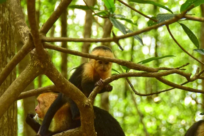 Entdecke die Mangroven von Costa Ricas Isla Damas bei einer entspannten Bootstour mit lokalem Guide, der dir Affen, Faultiere und bunte Vögel zeigt. Genieße frisches Obst an Bord, während das Sonnenlicht durch die verwobenen Wurzeln fällt. Kein Paddeln nötig – einfach zurücklehnen und den Rhythmus der Natur spüren.