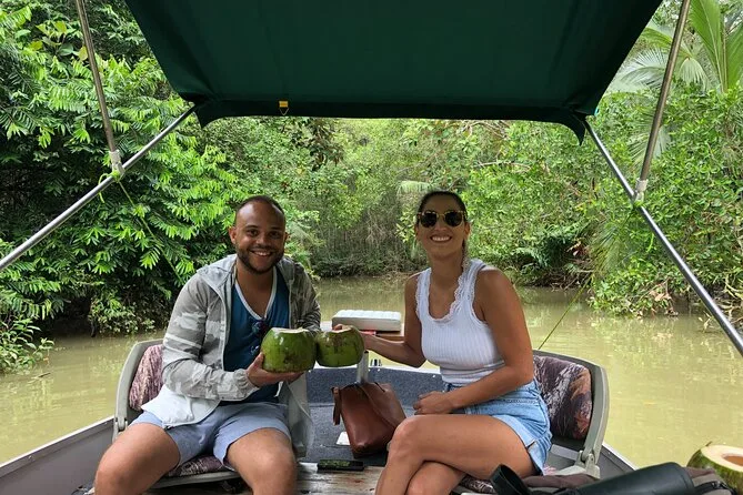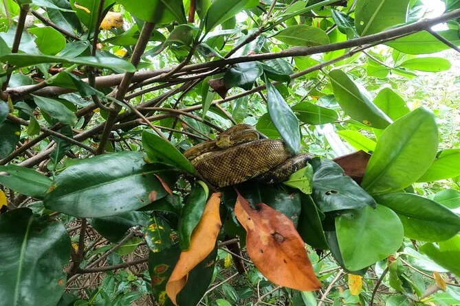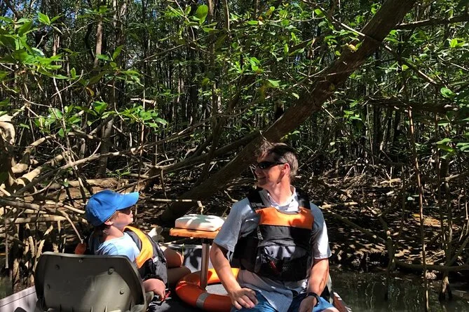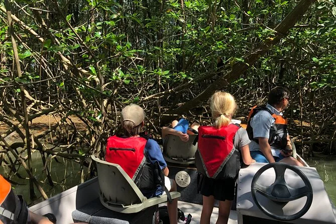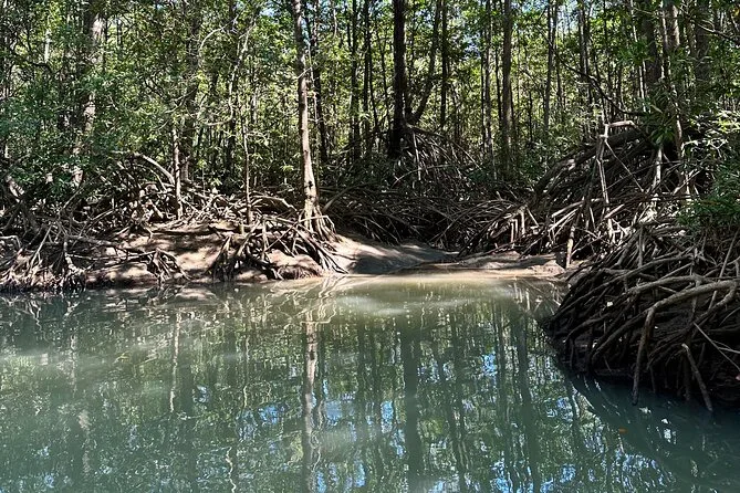 Dein Tag beinhaltet eine gemütliche Motorbootfahrt durch die üppigen Mangroven von Isla Damas mit zertifiziertem Guide, der dir die Tierwelt zeigt; frische Obstsnacks und Wasser sind inklusive, bevor ihr gemeinsam entspannt zurück ans Ufer gleitet.