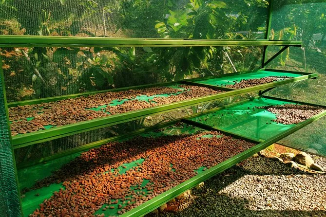Dein Tag beinhaltet den Eintritt zur Farm-Erfahrung nahe La Fortuna, eine freundliche lokale Expertin begleitet dich bei jedem Schritt – vom Kakaoverkosten bis zum Zuckerrohrmahlen – und du bekommst alle Proben von Schokolade, Spezialkaffee und hausgemachten Bonbons. Bei Bedarf gibt es klimatisierte Räume zum Verschnaufen.