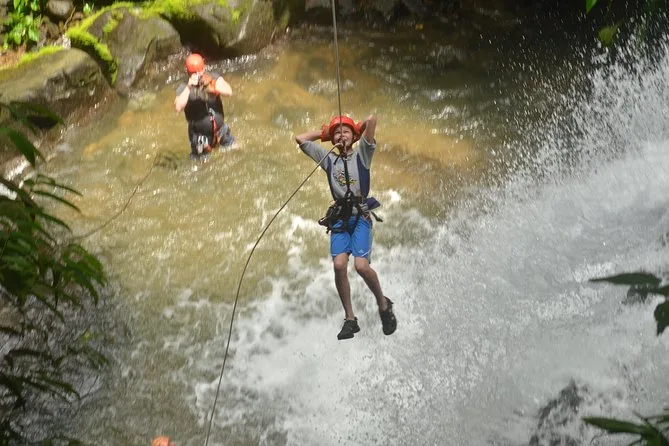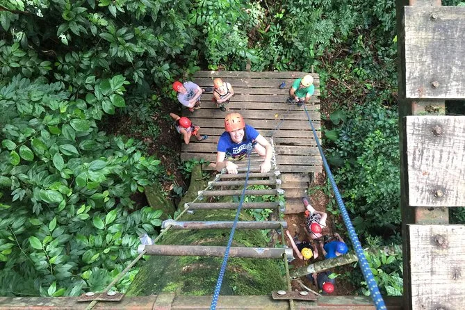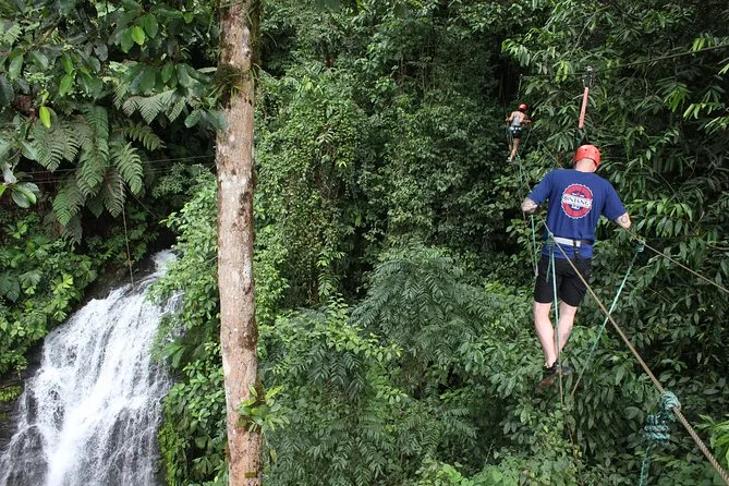 Der Kurs umfasst Wasserfall-Rappelling, Klettern an Bäumen, drei Zip Lines, den Monkey Drop und eine Hängebrücke.