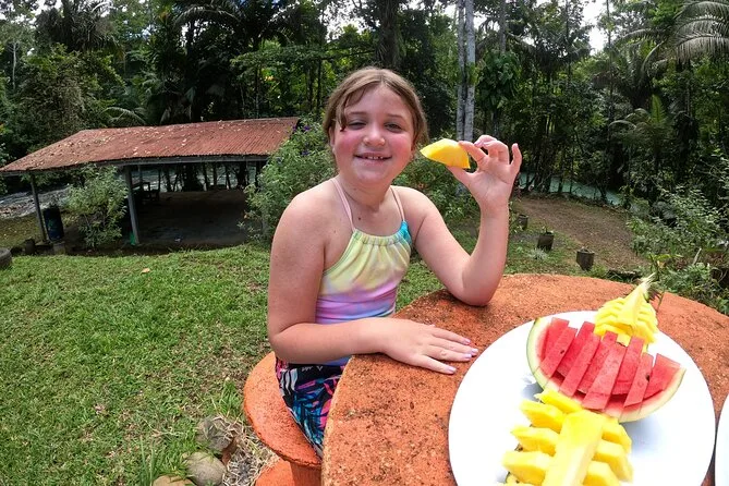 Mit Snacks und spannenden Geschichten entspannt den Rio Celeste hinuntertreiben