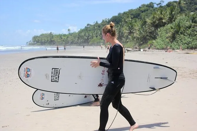 Dein Tag beinhaltet den privaten Transport nach Santa Teresa oder Playa Hermosa sowie die Nutzung eines hochwertigen Surfboards während deiner 90-minütigen Stunde mit einem erfahrenen lokalen Lehrer.