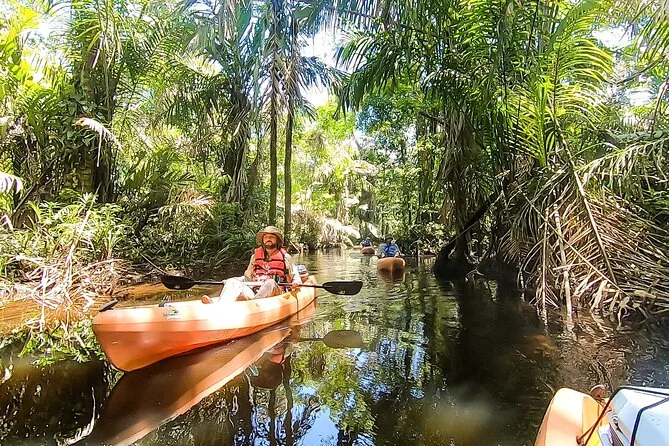 Dein Tag beinhaltet die Nutzung eines Kajaks mit Aluminiumpaddeln und Schwimmwesten für alle; bei Bedarf sind spezielle Babysitze verfügbar. Öffentliche Verkehrsmittel sorgen für eine einfache Anreise, damit du dich ganz auf das Erkunden von Tortugueros Wasserwegen mit deinem Guide konzentrieren kannst.