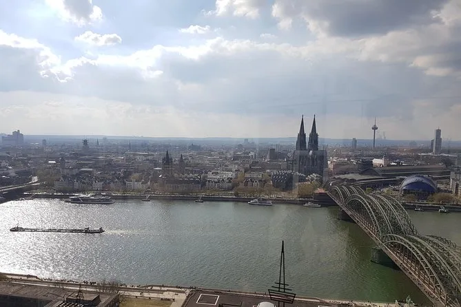 Du siehst den Kölner Dom, Museum Ludwig (von außen), das Römisch-Germanische Museum, den Petrusbrunnen, die Rheinpromenade und mehr.