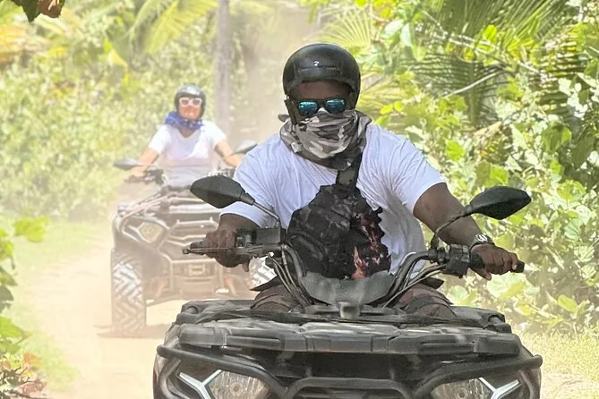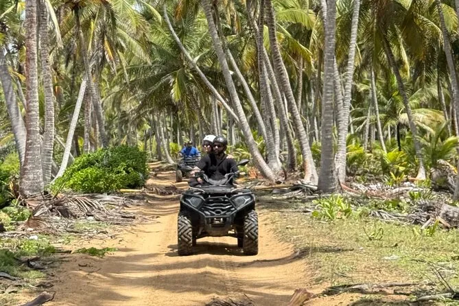 Erlebe eine authentische ATV-Tour in kleiner Gruppe von Punta Cana aus durch Dschungelpfade und wilde Strände – mit Zeit zum Schwimmen, wo nur du und das Meer sind. Genieße frische Kokosnüsse unter Palmen, probiere dominikanischen Kaffee bei einer Landfamilie und triff unterwegs Einheimische. Kein Schnickschnack, einfach ehrlicher Spaß mit tollen Leuten.