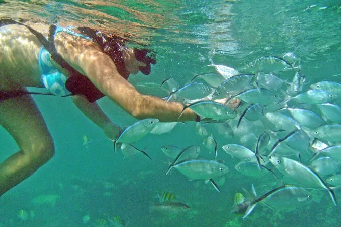 Wir ließen uns treiben, die Musik dröhnte, und dann reichte mir jemand die Schnorchelausrüstung. Ich bin eigentlich kein großer Schwimmer, aber das Wasser war so klar, dass ich selbst von oben schon gelbe Fische blitzen sah. Als ich endlich eintauchte, fühlte sich das kühle Wasser herrlich an – eine Wohltat nach dem Tanzen in der Sonne. Luis zeigte auf ein paar Korallen und grinste, als ich hustend wieder auftauchte (da muss ich wohl noch üben). Es gab auch Nachos – salzig, knusprig, vielleicht nicht das, was man auf einem Boot erwartet, aber genau richtig in dem Moment.