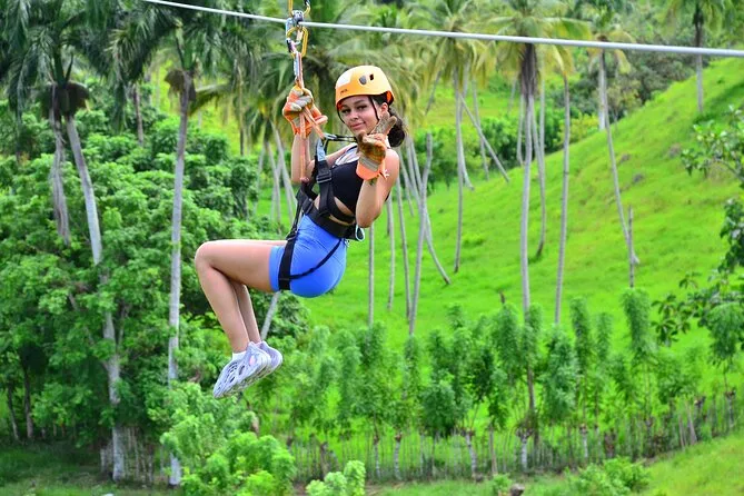Spüre den Adrenalinkick auf den Zip Lines hoch über Punta Canas Wäldern, saust durch matschige Pfade im Dune Buggy, grüße Einheimische, entspanne beim Reiten durch Kakaoplantagen und genieße frisches Obst und ein leckeres Mittagessen – ein Tag, der lange in Erinnerung bleibt.