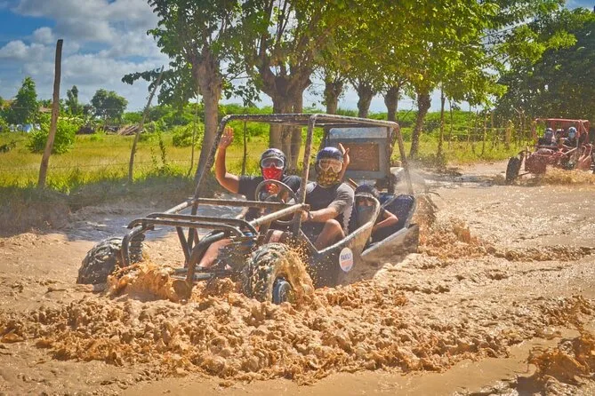 Erlebe eine spritzige Buggy-Tour von Samana über schlammige Pfade bis zum weißen Sandstrand von Playa El Valle, mit Halt auf einer dominikanischen Ranch für frisch gerösteten Kaffee und Kakao. Freu dich auf viel Spaß, echte Begegnungen, Zeit zum Schwimmen oder Barfußlaufen am Fluss und unvergessliche Momente.