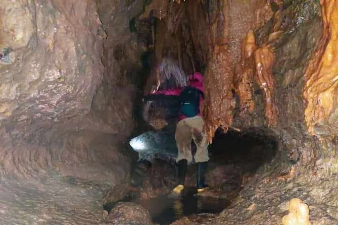 Du kannst Stalaktiten, Stalagmiten, Spinnen, Fledermäuse und andere Höhlenbewohner entdecken.