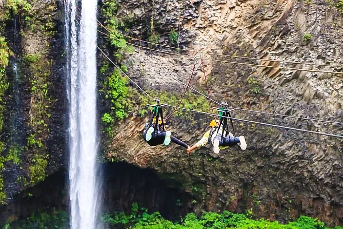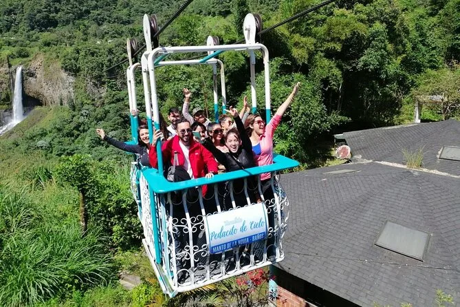 Beim Wasserfall-Morgen in Baños hast du die Möglichkeit zum Ziplining (Eintritt nicht inklusive).
