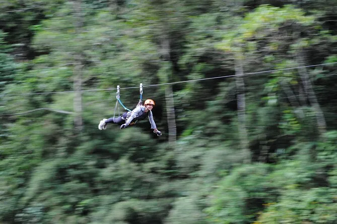 Hier gibt es zwei Möglichkeiten. Manche entscheiden sich für die klassische Zipline – eine direkte Fahrt über die Baumwipfel, der Wind pfeift dir um die Ohren, und unter dir glitzert der Fluss. Aber wer mehr will, kann den ganzen Multicircuit machen: Du überquerst eine tibetische Hängebrücke, die gerade genug wackelt, um dein Herz höher schlagen zu lassen, wagst eine Skateboard-Fahrt auf einem Kabel (ja, wirklich), und kletterst eine via ferrata, die in den Felsen geschraubt ist. Ich habe mich für den kompletten Parcours entschieden. Bei der zweiten Linie hatten sich meine Nerven beruhigt, und ich begann, Vögel zwischen den Ästen zu beobachten und die Kinder aus der Stadt anzufeuern, die unten standen. Das Ganze dauerte vielleicht zwei Stunden, fühlte sich aber viel länger an – wahrscheinlich, weil meine Hände noch zitterten, als wir zum Van zurückkamen.