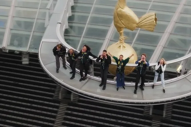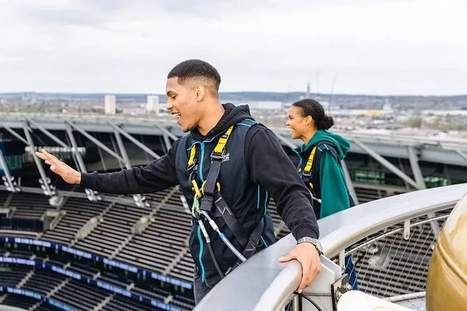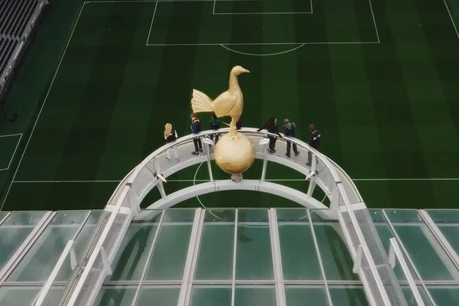 Spüre deinen Puls steigen, während du mit einem lokalen Guide über das Tottenham Hotspur Stadium in London kletterst. Betritt die Glasplattform hoch über dem Spielfeld, genieße den Panorama-Blick neben dem goldenen Hahn und halte deine Momente am Gipfel fest – Nervenkitzel inklusive.