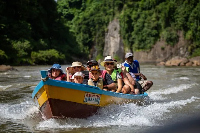 Dein Tag startet mit Abholung in Suva oder am Kreuzfahrthafen, privatem Transport in klimatisiertem Fahrzeug, allen Aktivitäten wie Langbootfahrt, Dorfbesuch mit Kulturprogramm, Schwimmen am Wasserfall, Tubing auf dem Fluss und einem Buffet-Mittagessen am Flussufer, bevor du entspannt zurückgebracht wirst.