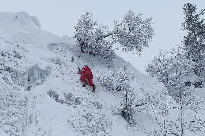 Dein Tag beginnt mit dem Treffen deines lokalen Guides an der Rezeption des Hotels Pyhätunturi in Pyhä, inklusive kompletter Eiskletterausrüstung (Helm mit Visier oder Schutzbrille, Klettergurt, Steigeisen, Pickel und Stiefel), einer geführten Wanderung durch verschneite Wälder zum Tajukangas-Eisfall, zwei vollständigen Aufstiegen pro Person an der Eiswand sowie Pausen am Lagerfeuer mit heißen Beerendrinks und Geschichten, bevor es zurück aus der winterlichen Stille Lapplands geht.