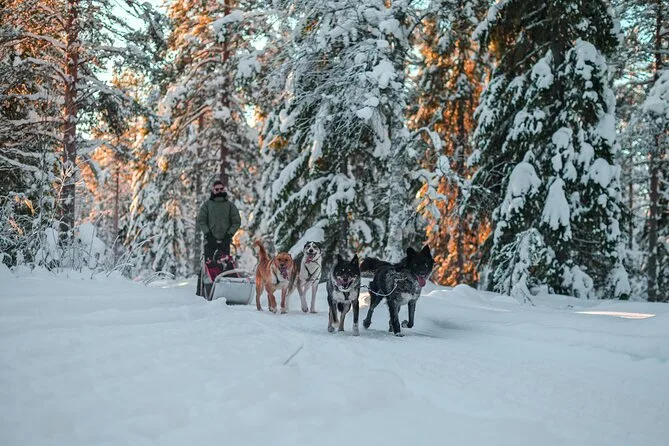 Spüre den Adrenalinkick, wenn du dein eigenes Husky-Gespann durch die verschneiten Wälder Lapplands bei Rovaniemi lenkst und unterwegs die Plätze tauscht. Wärm dich danach am Feuer in einer traditionellen Kota mit Würstchen und Keksen auf, während dein Guide spannende Geschichten vom Leben mit Huskys erzählt – ehrlich, gemütlich und fernab vom Massentourismus.
