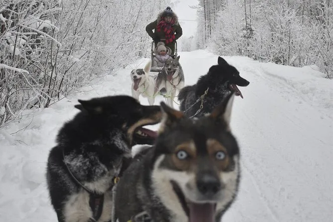 Dein Tag beinhaltet Hin- und Rücktransfer von Rovaniemi nach Parpalandia, warme Winterkleidung mit Schuhen und Overalls für die Tour sowie Würstchen, Kekse und heißen Beerensaft in einer gemütlichen Kota nach deinem Husky-Abenteuer in kleiner Gruppe.