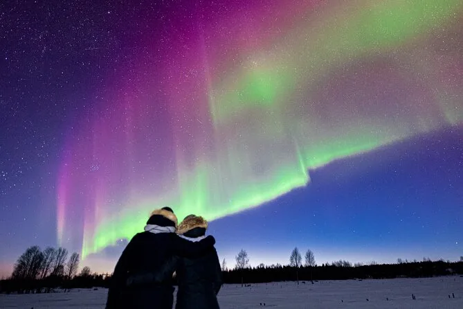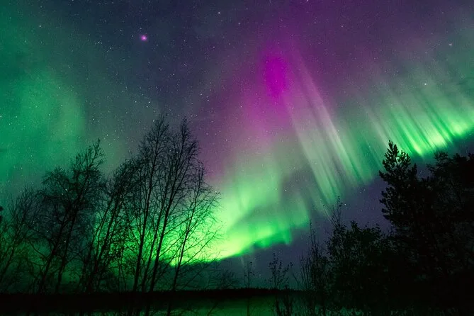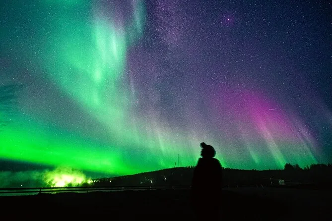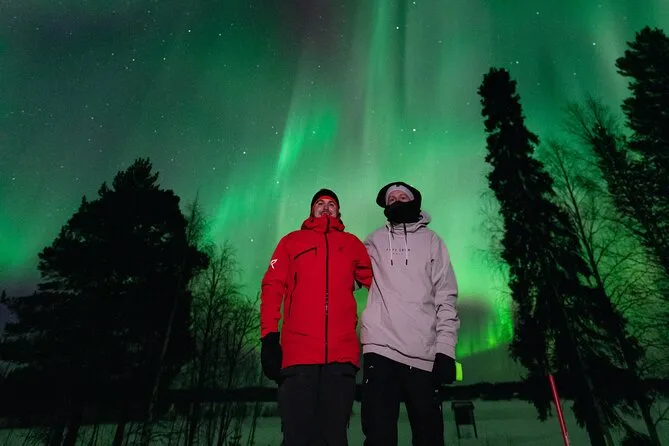 In deiner Nacht sind Thermo-Winterkleidung, alle Steuern und Gebühren, heißer Beerensaft und Kekse am Lagerfeuer (wenn möglich), Wetter-Tracking durch lokale Experten, die bis zu 400 km um Rovaniemi nach klarem Himmel suchen, unbegrenzte Profi-Fotos per E-Mail nach der Tour – und falls du keine Nordlichter siehst, bekommst du dein Geld zurück oder kannst es an einem anderen Abend erneut versuchen.