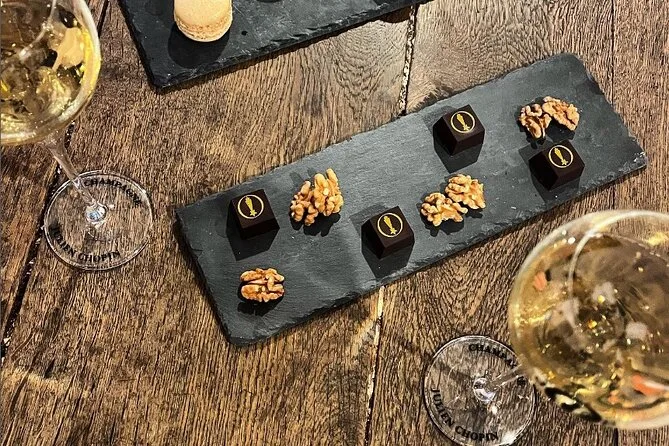 Zur Mittagszeit saßen wir an einem Winzertisch mit Platten voller Jambon de Reims, Entenrillettes mit Ratafia (dem süßen lokalen Wein) und Käse wie Chaource und Langres. Eine Schokolade mit Ratafiafüllung schmolz schnell – nicht zu lange neben dem Glas liegen lassen! Das Dessert mit Biscuit Rose de Reims musst du unbedingt probieren; es ist knusprig und genau süß genug, um perfekt zum Champagner zu passen.