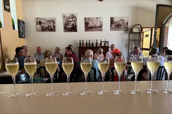 Du probierst mindestens 9 verschiedene Champagner plus mehrere lokale Weine und Spirituosen – alles inklusive.