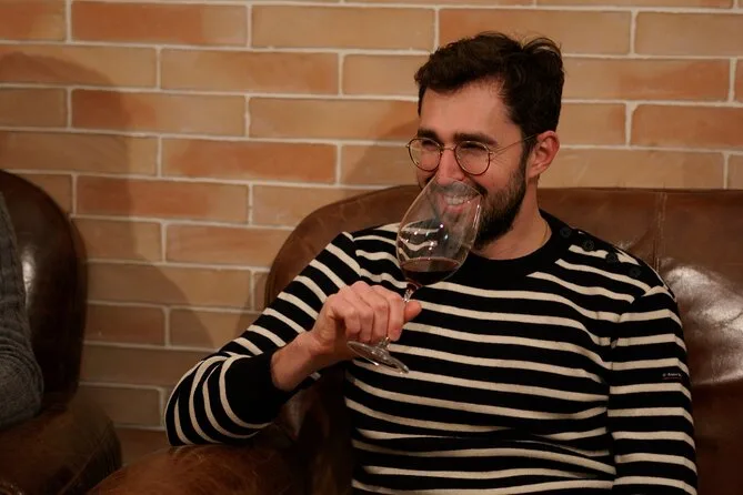 Ich hätte nicht gedacht, dass ich bei einer Weinverkostung so viel lachen würde. Mathieu erzählte von den großen französischen Weinregionen – Bordeaux, Burgund, Champagne – aber auch von winzigen, unbekannten Gegenden. Er ließ uns raten, welche Rebsorte im Glas war (einen Tipp hab ich zufällig richtig gehabt). Einmal hielt er das Glas hoch und sagte: „Riecht mal – was fühlt ihr?“ Ehrlich gesagt roch ich vor allem Brotkruste und vielleicht Äpfel? Jemand anderes meinte „nasse Steine“, was alle zum Kichern brachte. Dann kam die Käseplatte mit Comté und einem weichen Käse, dessen Namen ich nicht aussprechen kann; die Kombination mit dem Wein war so besonders, dass ich sie noch immer nicht ganz verstehe, aber sehr mochte.