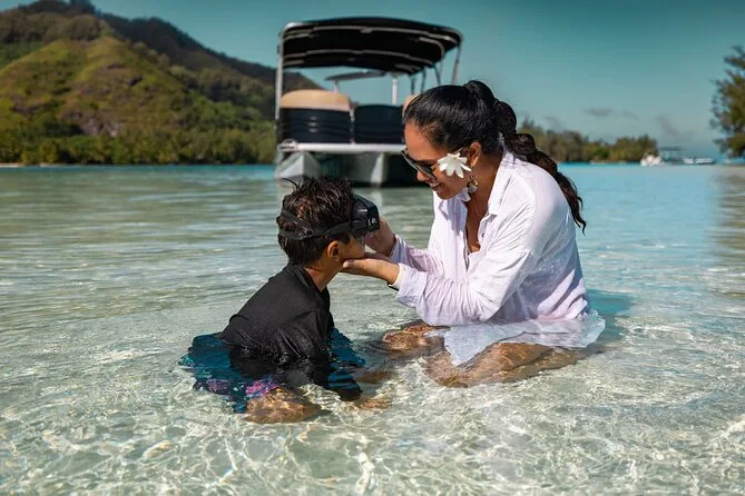 Du gleitest auf einem gemütlichen Lounge-Boot durch Mooreas Lagune, begleitet von Einheimischen, die jede Legende und jeden Geheimtipp kennen. Schwimme sicher mit Schwarzspitzenhaien und sanften Rochen, entdecke bunte Korallengärten und genieße frisches tropisches Obst mit Blick auf die Berge. Mehr als nur Schnorcheln – ein echtes Inselerlebnis.