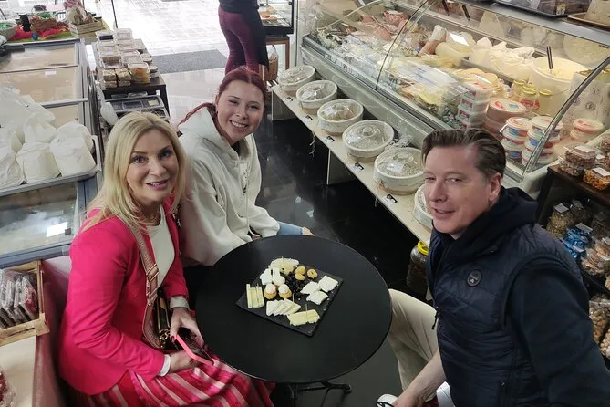 Die Tour umfasst Bougatsa, lokale Käsesorten, Oliven, Loukoumades (Süßigkeiten), Kalitsounia, griechischen Kaffee und Raki (Tsikoudia). Nachmittags gibt es zusätzlich Pita Gyros.