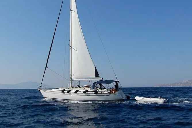 Steigen Sie in Mykonos an Bord eines Segelboots mit Hoteltransfer, besuchen Sie die antiken Marmorräume und die sagenumwobene Geschichte von Delos, schwimmen oder schnorcheln Sie an der friedlichen Insel Rhenia und genießen Sie ein entspanntes Mittagessen an Deck. Sonne im Gesicht, spannende Geschichten vom Guide und unvergessliche Momente inklusive.