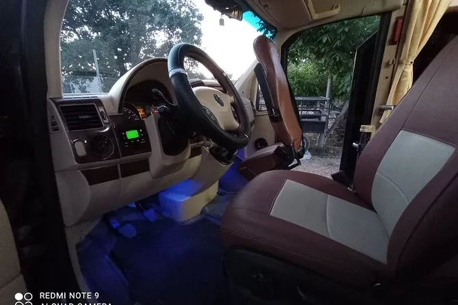Ihr privater Transfer beinhaltet die Abholung am Flughafen oder Hafen von Heraklion oder Chania durch einen lizenzierten lokalen Fahrer, die Fahrt in einem klimatisierten Fahrzeug mit Platz für bis zu 11 Personen, kostenloses WLAN während der gesamten Strecke, Wasserflaschen für alle Mitfahrer, alle Gebühren und Steuern sowie Sicherheitsfeatures wie einen mobilen Defibrillator und eine sichere Geldbox – so können Sie sich einfach zurücklehnen und die vorbeiziehende Landschaft Kretas genießen.
