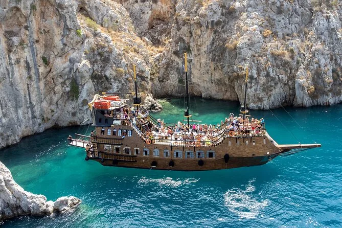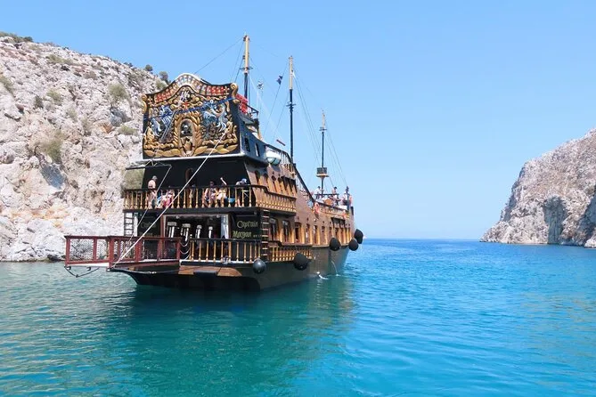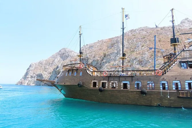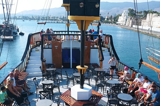 Kurz nach dem morgendlichen Trubel stiegen wir im Hafen von Kos auf die Captain Morgan. Schon beim Einsteigen lag die Mischung aus Sonnencreme und Meer in der Luft. Das Schiff war größer als gedacht – drei Decks, alles nagelneu und blitzblank, mit dicken blauen Polstern, auf denen man am liebsten sofort zusammenklappen würde. Unser Guide Yannis begrüßte uns mit einem breiten Grinsen und einem Spruch über die „griechische Zeit“ (er hatte recht – wir legten zehn Minuten später ab). Familien, Paare, ein paar Alleinreisende wie ich – alle entspannten sich sofort, als wir den Hafen verließen.
