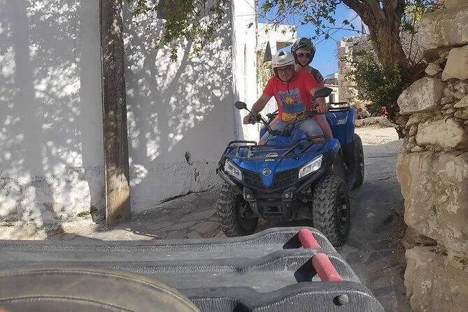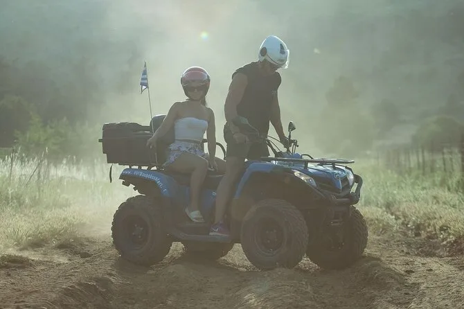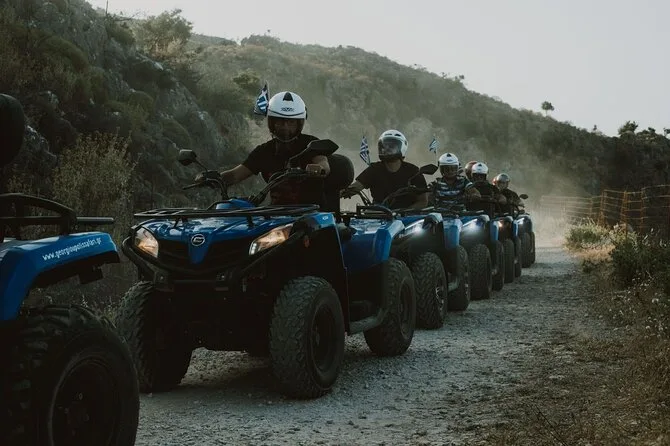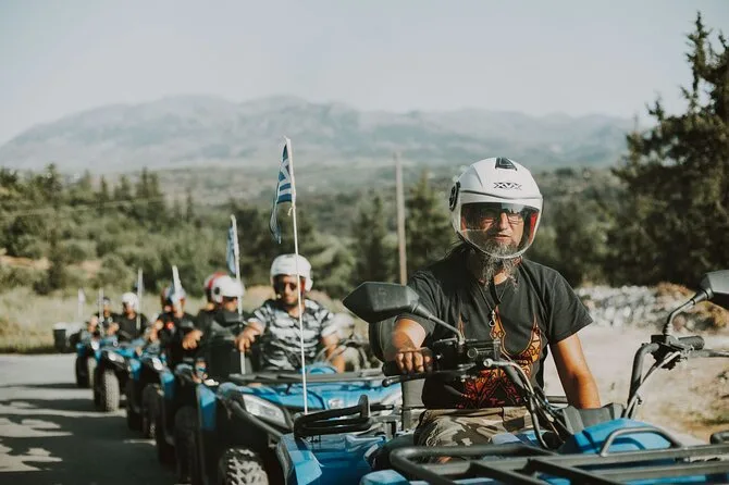 Dein Tag umfasst den Transfer aus der Region Georgioupolis, die Nutzung eines 450cc Quads (je 2 Personen pro Fahrzeug), Helm, alle Gebühren und Steuern, Snacks unterwegs sowie eine Pause mit Kaffee in einer alten Ölmühle, bevor es zurück durch Kretas Hügel geht.