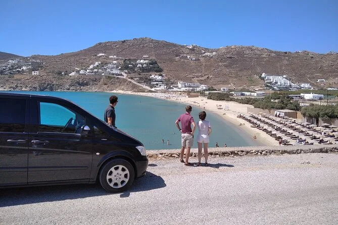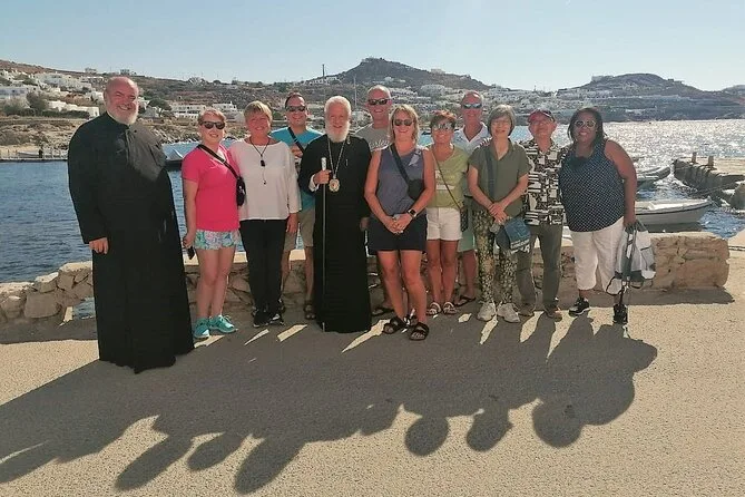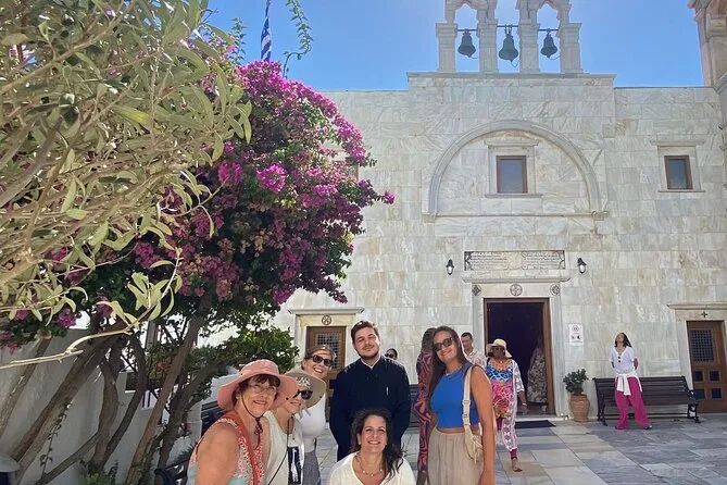 Dein Tag startet mit Abholung vom Hotel oder Kreuzfahrthafen im klimatisierten Fahrzeug, inklusive Eintritt ins Kloster Panagia Tourliani, einem leichten Snack mit Tsipouro in Ano Mera und viel Zeit zum Schwimmen am Agios Ioannis Strand, bevor du wieder zurückgebracht wirst.