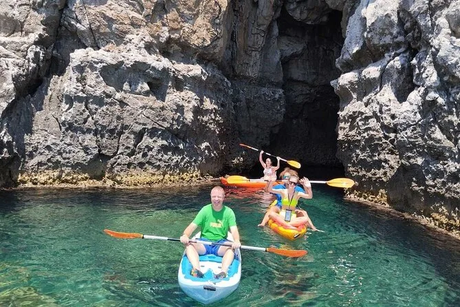 Das Mittagessen gab es irgendwo zwischen Schwimmen und Sonnenbaden. Teller mit Tomaten, Feta, Oliven – nichts Aufwendiges, aber irgendwie besser als jedes Restaurantessen, weil man mit nassen Haaren und salziger Haut isst. Dazu gab’s lokalen Wein (ich hatte zwei Gläser, schuld war die Meeresluft). Danach legten wir bei dem sogenannten Fun Island an – eigentlich nur ein paar zusammengebundene schwimmende Plattformen mit Kanus und SUP-Boards drumherum. Klingt albern, aber auf einer aufblasbaren Couch liegend, die Füße im Wasser, während die Kinder versuchen, auf den Paddleboards das Gleichgewicht zu halten… ich weiß nicht, ich musste öfter lachen als erwartet.