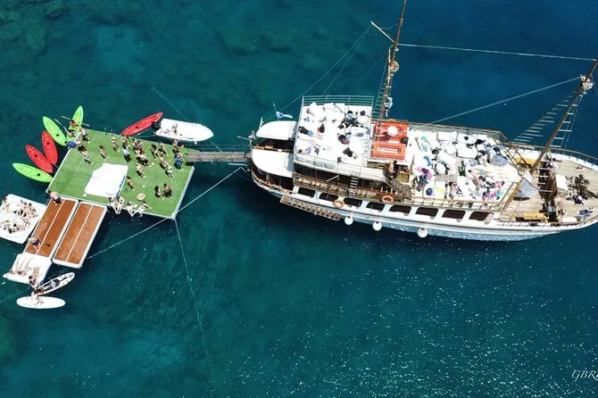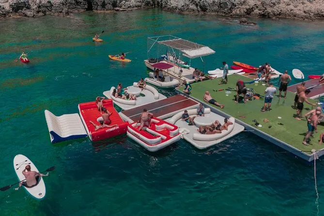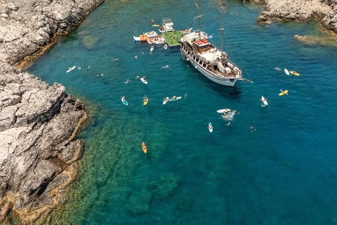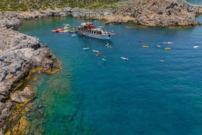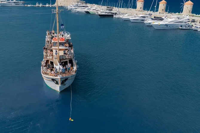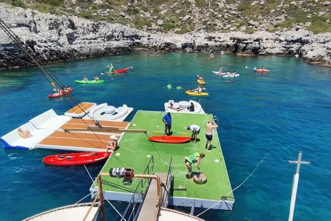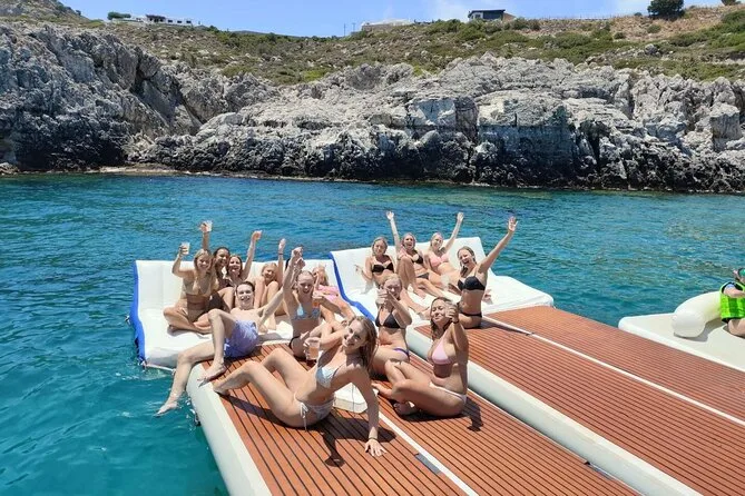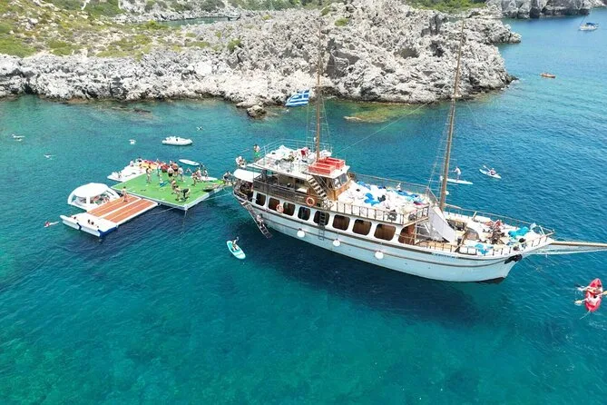 Die Hauptstopps sind Anthony Quinn Bay, Fun Island (schwimmende Plattformen) und die Kallithea-Thermen.