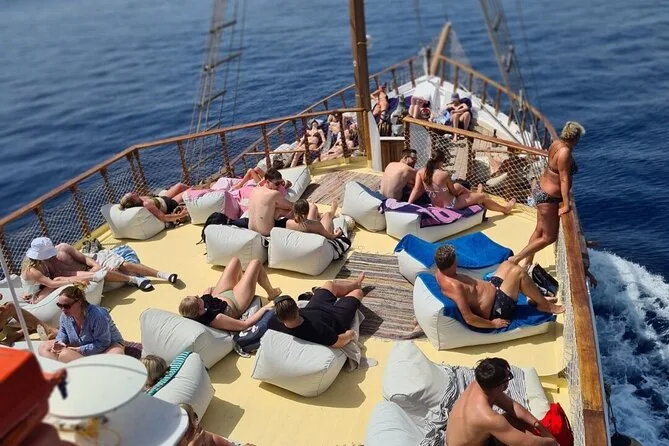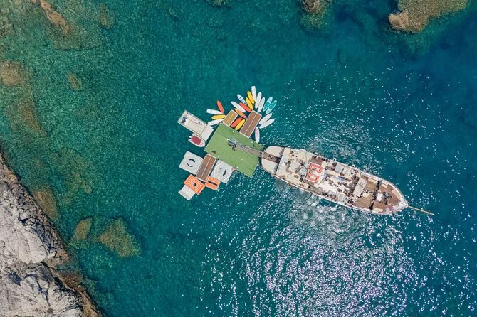 Dein Tag beginnt mit der Abholung am Hafen von Rhodos und dem Einstieg auf das Holzdeck der El Greco; unbegrenzt Softdrinks, Wasser und lokalen Wein; kostenlose Nutzung von Schnorchelausrüstung sowie SUPs und Kanus auf Fun Island; Toiletten an Bord; ein traditionelles griechisches Mittagessen mit frischen Obstplatten; dazu viel Zeit zum Schwimmen in der Anthony Quinn Bay und zum Erkunden der Kallithea-Thermen, bevor es am späten Nachmittag zurückgeht.