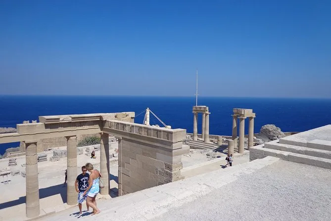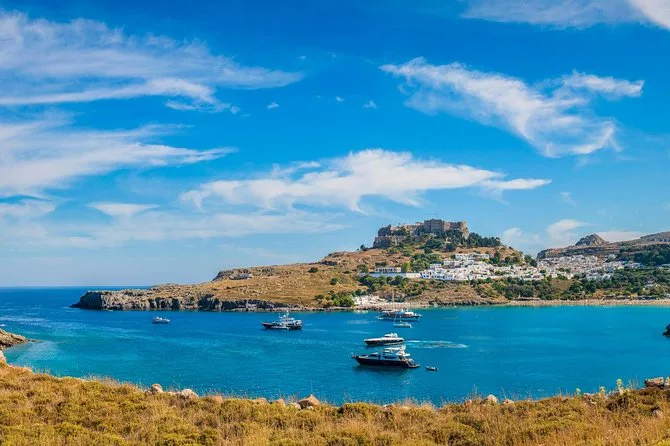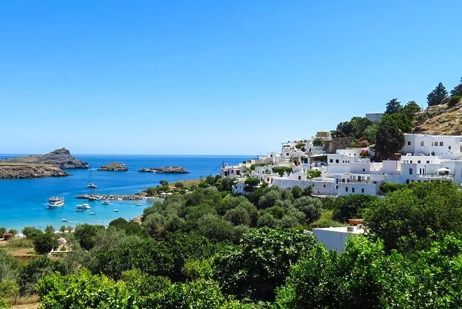 Du fährst mit dem Boot von Rhodos nach Lindos, hast Zeit, die antike Akropolis zu erkunden oder an goldenen Stränden zu entspannen, bevor es zurückgeht mit Badespausen in der Tsambika- und Anthony Quinn-Bucht. Freu dich auf salzige Luft, lokale Gespräche und ruhige Momente zwischen den Abenteuern – plus genug Zeit zum Schwimmen oder einfach zum Abschalten.