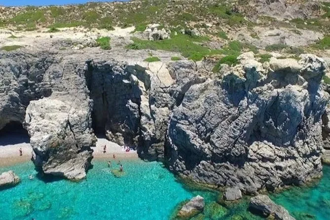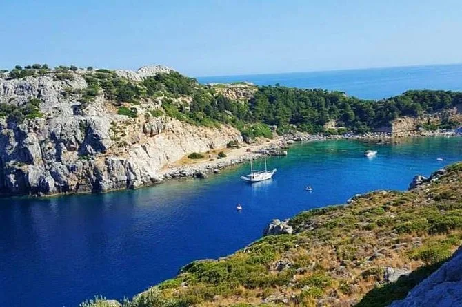 Die Tour beinhaltet drei Schwimmstopps: Kallithea Springs Bay, Afandou Beach und Anthony Quinn Bay.