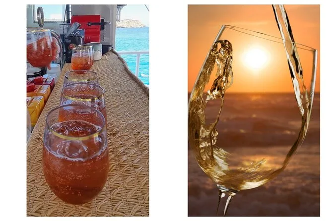 Steig an Bord eines klassischen Holzbootes im Mandraki Hafen für eine Tagestour auf Rhodos mit drei Schwimmstopps – darunter Kallithea Springs und Anthony Quinn Bay – plus Cocktails von der offenen Bar und einem frischen griechischen Buffet an Bord. Schnorchelausrüstung ist inklusive, und mit viel Platz zum Entspannen oder Plaudern mit Einheimischen wirst du überraschend tiefenentspannt zurückkehren.