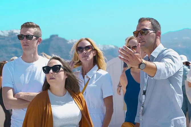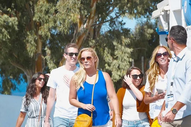 Dein Tag umfasst die Abholung vom Hotel oder Hafen an jedem erreichbaren Ort auf Santorini, einen englischsprachigen Fahrer-Guide mit spannenden Geschichten, Mineralwasser zum Abkühlen unter der griechischen Sonne sowie den Transport im komfortablen, klimatisierten Mercedes-Van. Du hast volle Flexibilität, um Stopps wie Oia, Pyrgos, schwarze Strände oder eine Weinkellerei einzubauen oder auszulassen – und kannst jederzeit zurückfahren, wenn du bereit bist.